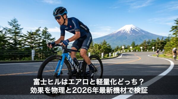 富士ヒル攻略で「軽量化」と「エアロ」どちらが有利か物理演算で徹底解説。平均勾配5.2%のコース特性では、勾配6%を境に優位性が入れ替わります。シルバー・ゴールドを目指すライダーが知るべき、1kgの軽量化に匹敵する空力対策と投資効率の正解とは。 -