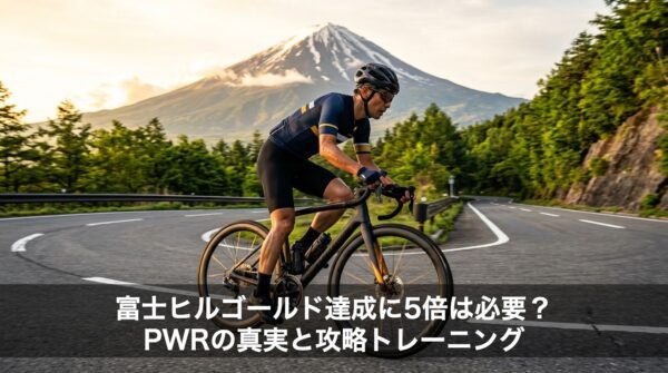 富士ヒルクライムでゴールド(65分切り)を目指すサイクリスト必見。達成に必要なW/kgの理論値や体重別ワット数表、忙しい社会人でもFTPを向上させる効率的メニューを解説。集団走の技術や高地対策まで、シルバーから飛躍するための戦略を網羅。 -