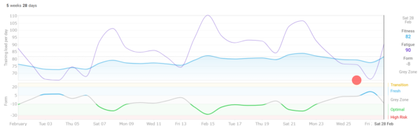 本当はCTLを95くらいまで持って行きたかったですが、あいにく84が2月のMAXでした。