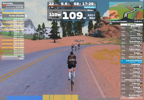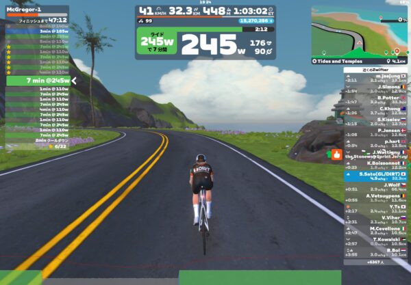 ケイデンスも90前後を維持してあっという間に6セット終了です。