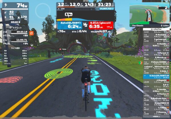 明日はギリ踏めそうなので、ズイフトレースで心肺機能と筋肉に刺激入れをやってみようと思います。