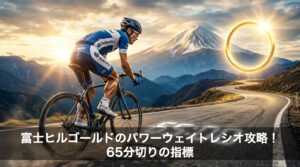 富士ヒルゴールド達成に必要な「5倍」という数字は、単なる絶対値ではなく、高地補正や戦略を含めた総合力の指標です。低地でのFTP向上に励む一方で、ドラフティングや機材、ピーキングといった「パワー以外の要素」を磨き上げることで、65分の壁は必ず突破できます。